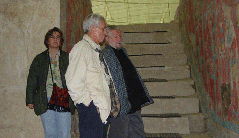 Figura 8 Inspección de las pinturas murales de Cacaxtla, junto a Jaime Cama Villafranca y María del Carmen Castro (ca. 2010).