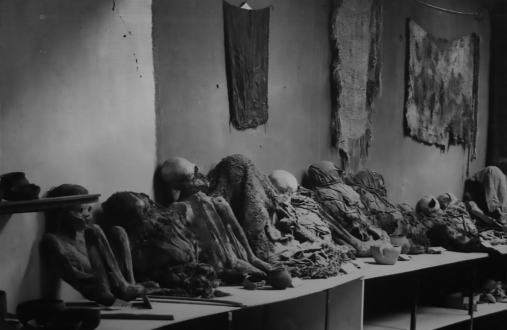 El Museo Arqueológico de San Pedro de Atacama18 fue fundado en 1963 por el sacerdote jesuita de origen belga Gustavo Le Paige Walke, quien dedicó 25 años de su vida a la búsqueda, recolección y estudio de sitios funerarios en la zona. La intención de Le Paige era habilitar un museo que permitiera conocer la cultura prevaleciente en la zona de San Pedro de Atacama (Pavez, 2012; Morales y Quiroz, 2017), a través de una valiosa colección de arqueología andina que incluyera objetos de diversas materialidades (cerámicas, textiles, metales, etc.). Pero también cerca de cinco mil cráneos y trescientos cuerpos humanos en excelentes condiciones de preservación, dadas las condiciones climáticas de esta región (Figura 1).