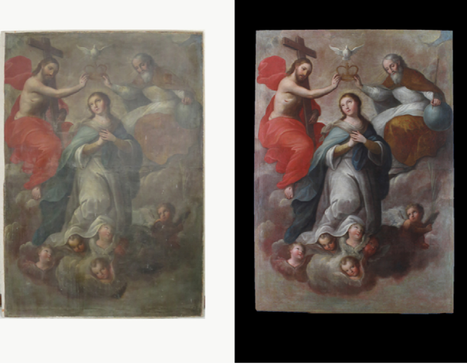 Figura 13 Antes y después de la intervención de La coronación.