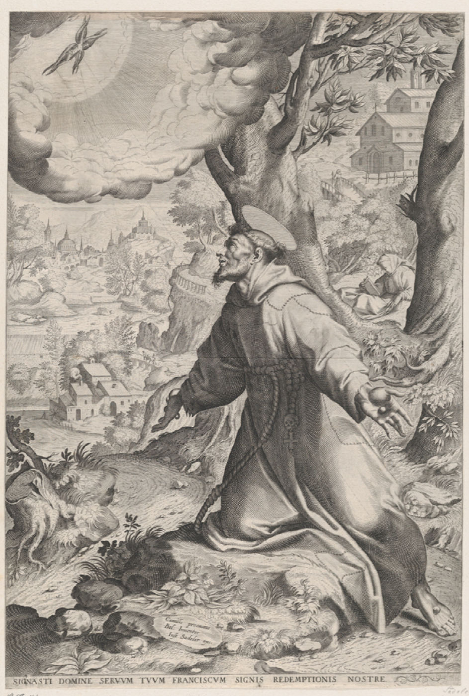 Figura 3 Maerten de Vos invenit, Hieronymus Wierix fecit. (1584). Franciscus van Assisi ontvangt de stigmata van Christus.