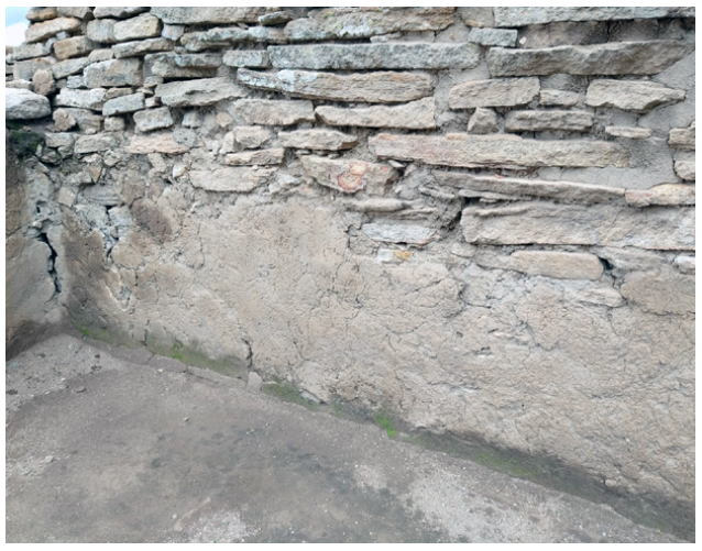 FIGURA 1 Vestigios de muro con aplanado a base de tierra en la zona arqueológica La Quemada, Zacatecas.