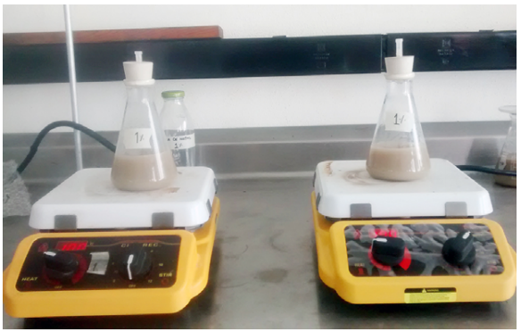La preparación de soluciones se llevó a cabo mediante un proceso de hidratación de la goma en polvo, que consistió en disolver éste en agua, a una temperatura de 90 °C, manteniendo una constante agitación durante seis horas para asegurar su completa disolución (Figura 4), con lo que se rehidrató la goma de nopal, garantizando la disolución de los azúcares en el medio acuoso y obteniendo una solución con las características y propiedades fisicoquímicas de una goma fresca, en su estado natural.