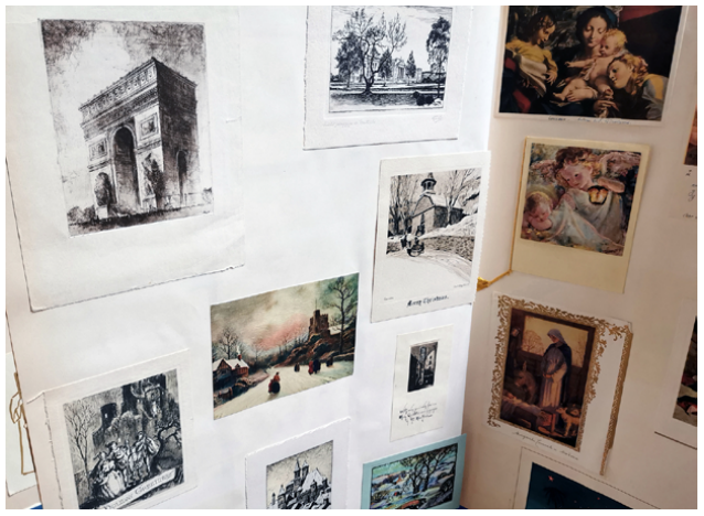 Los materiales fotográficos que integran la colección comprenden una temporalidad de 1868 a la década de 1960. Se agruparon en cinco categorías: fotografías que pertenecieron al padre Anaya y a su familia; que le obsequiaron sus amigos y conocidos; de los diversos proyectos de la Acción Católica; fotografías, recortes y postales de diversos lugares del mundo, y, finalmente, una sección con tarjetas navideñas y de participaciones, entre las que se encuentran ejemplos elaborados por la afamada artista potosina Zita Basich Leija (Figura 3).