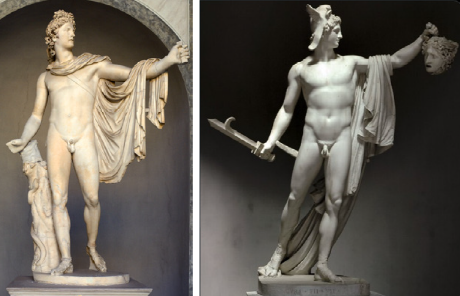 Figura 10 A la izquierda. Apolo de Belvedere, entre 360 y 320 a.C.. A la derecha. Perseo Triunfante, 1801.