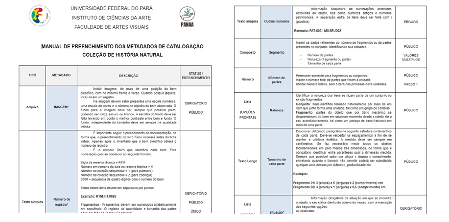 We recognize the valuable work of the reviewers who, even anony mously, contributed the most to the improvement of this document. The project presented here could not have happen without the support of the Federal University of Pará through the Institute of Art Sciences, the Faculty of Visual Arts, and the UFPA Museology course. We also thank all members of the Technical Reserve who work at NHC/UFPA, namely: Erika Mourão, Bruna Maranhão and Sônia Cordovil.