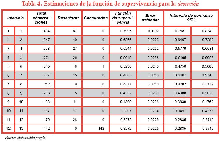 Palabras clave: deserción, graduación, modelos de supervivencia, tiempo discreto.