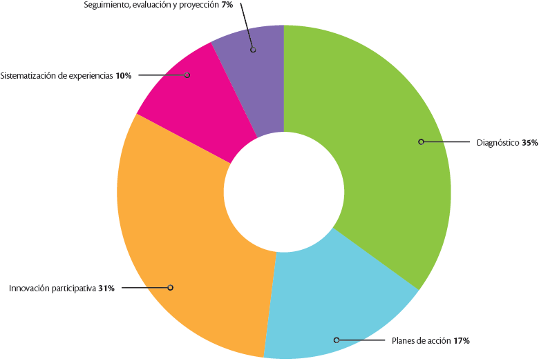 Inserción en investigaciones y/o innovaciones: se trata de acciones de investigación en fincas con agricultores, así como inventario y monitoreo de innovaciones agrícolas.