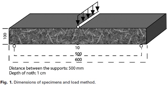 In this test program, the mix design for the FRC was as follows: PC 32.5 I Portland cement 373 kg/m3, fly ash 93 kg/m3; aggregate 45% (1-5 mm) and 55% (5-10 mm), superplasticizer 1%, water binder ratio 0.45. Two types of fibre were examined: