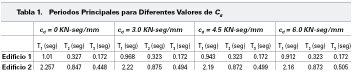 Para los valores de cd seleccionados se calcularon los periodos naturales de cada estructura (Tabla 1) y el amortiguamiento del sistema (Tabla 2).