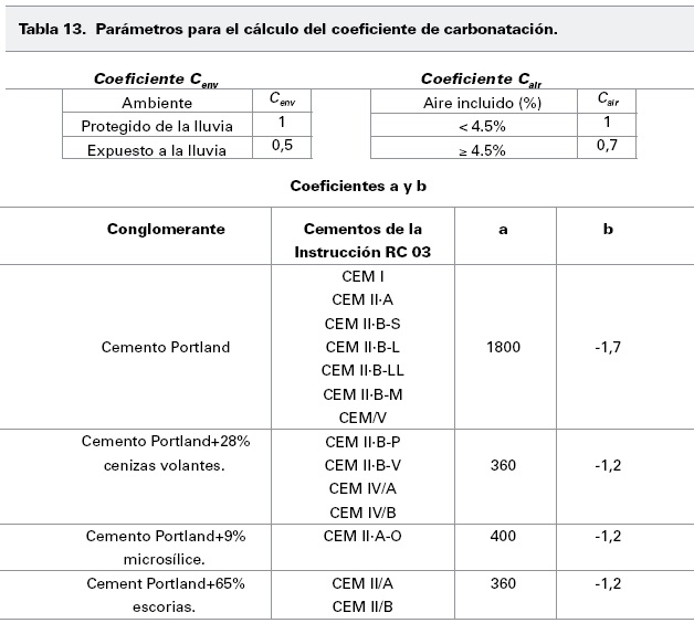 El coeficiente de carbonatación Kc se obtiene a partir de la siguiente formulación: