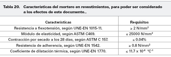 Para que un mortero pueda ser empleado de acuerdo con lo indicado en este documento, sus componentes (cemento, agregados, aditivos, adiciones, etc.) deberán cumplir, en su caso, lo especificado para cada uno de ellos en la correspondiente normativa. Además, independientemente del valor de su factor de equivalencia, deberá cumplir también las especificaciones de la siguiente tabla.