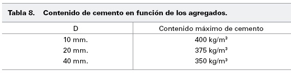 * No superar los contenidos de cemento en función del tamaño máximo del agregado.