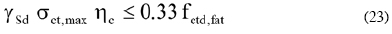 El esfuerzo absorbido por la armadura debe estar limitado por la Ecuación 33 para evitar la rotura de las bielas comprimidas del hormigón.