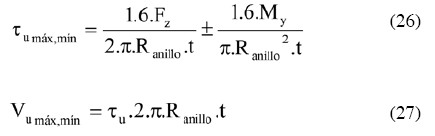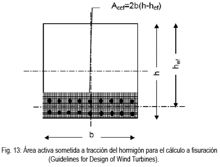 Sin embargo, estos casos no corresponden al de una columna de hormigón, por lo que para determinar la forma de la sección equivalente y la posición de los planos de falla a flexión, corte y punzonado deberá aplicarse un criterio más conservador que el aquí expuesto. Esta afirmación se basa en la diferencia de rigideces entre el fuste metálico del aerogenerador y la base de hormigón armado.