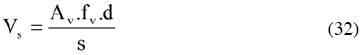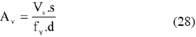 estar adecuadamente anclados. El área de la armadura de corte, Av, se calcula con la (Ec. 28) y es igual al área de la sección transversal de todas las ramas de armadura.