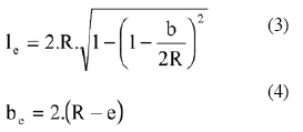 El eje mayor le y el menor be de la elipse se calculan con las Ecuaciones 3 y 4.
