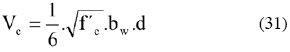 Vc es la resistencia a corte aportada por el hormigón, que para bases de espesor constante tiene la forma de la Ecuación 31.