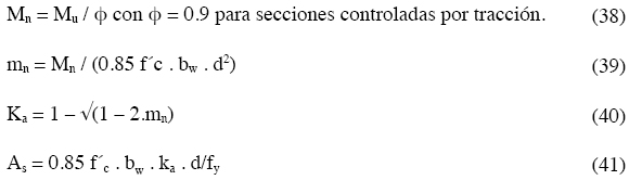 El cálculo a flexión según el Código ACI 318 puede ser desarrollado mediante las siguientes expresiones, en las cuales