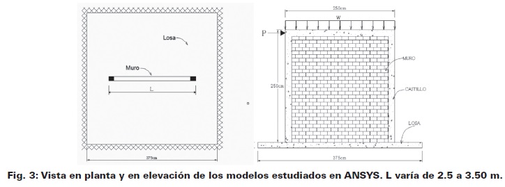En la Tabla 1 se puede observar que se ha variado la longitud del muro, y se han utilizado dos espesores diferentes de losa. De acuerdo a la Figura 4, el modelo se dividió a la mitad, con el fin de ahorrar tiempo de cómputo y facilitar el análisis. También se indica la condición de apoyo de la losa, que se supone totalmente restringida en sus bordes.