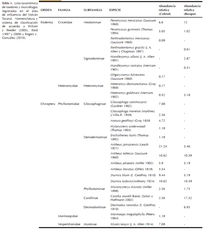 Rodents and bats in the coffee zone from Tacaná Volcano, Chiapas, Mexico