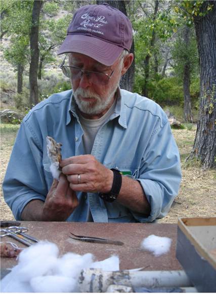More generally, the post-retirement era has seen a return to Jim’s Grinnellian roots. He has undertaken significant taxonomic and phylogenetic revisions of several important lineages of California rodents, notably woodrats (genus Neotoma) and pocket mice (genus Chaetodipus). At the core of these projects are extensive field surveys of western North America (Figures 2 and 3) - now in their 80’s, Jim and Carol still spend a part of each spring and fall trapping rodents. The resulting specimens - prepared with typical Patton perfection (Figure 4) - are being used in numerous ongoing studies of mammalian biology. In all aspects of their work, the Pattons embody the principles, practices, and dedication to natural history espoused by Grinnell (Figure 5).