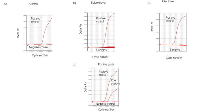The employed strategy was the analysis of 12 pools of saliva (10 individual saliva samples were mixed) before (1 day) and after staying at the resort (5 days) using the Real-Time Quantitative Reverse Transcription PCR (qRT-PCR) technique approved by the “Instituto de diagnóstico y referencia epidemiológica” (Indre) based on the Berlin protocol (Corman et al., 2020).
