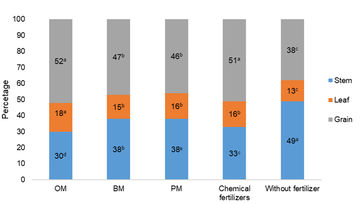 | Nitrogen (%) | 0.98 a | 0.95 a | 0.78 b | 0.04 |