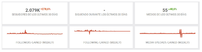 Por su parte, el análisis de la curva de crecimiento con la herramienta Social Blade evidencia una tendencia positiva en relación con el número de seguidores, que remontó tras la caída de meses anteriores, y respecto a las publicaciones de la cuenta (ver figura 2).