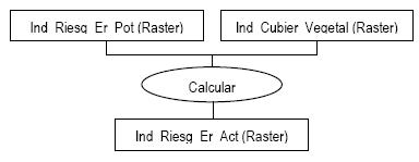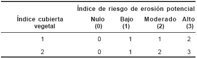 Se calcula interpolando el índice de cubierta vegetal con el índice de riesgo de erosión potencial de la manera siguiente: