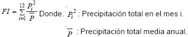 La clase de variabilidad se determina primero calculando el Índice de Fournier modificado (Fournier, 1960), por la fórmula: