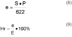 Posteriormente se calculó la tensión de vapor de agua a partir de la fórmula (8) y finalmente se obtuvo la humedad relativa con el empleo de la fórmula 9.