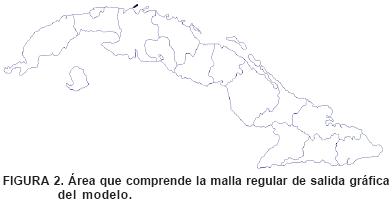 La salida gráfica final del trabajo comprende el área enmarcada entre los 19.74 y 23.43° de latitud norte y entre los 73.86 y los 85.06° de longitud oeste (Figura 2).