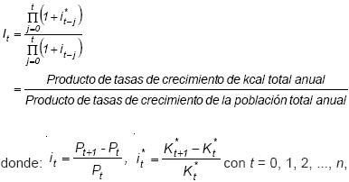 i*t: tasa de crecimiento del total anual de kcal de ta t + 1,
