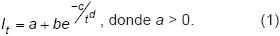 Al ISAG se ajustó, utilizando el método Marquardt del procedimiento NLIN (SAS, 1989), la función monótona creciente (como históricamente lo exhibe el ISAG), seleccionada de seis ensayadas con características análogas, asintótica a un valor finito (de acuerdo a la estabilidad esperada de la población mundial):