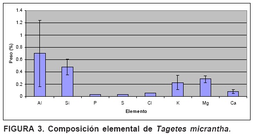El conocer la composición elemental de las plantas puede ser útil desde varios puntos de vista, como el saber sus necesidades nutricionales y tener una idea del tipo de mantillo que se podría formar en un momento dado. En el caso específico del silicio, las plantas que lo acumulan pueden formar fitolitos, muy útiles en paleoecología y arqueología. Se recolectaron especies de plantas de varias partes del centrooccidente de México y se determinó su composición elemental mediante sonda dispersiva de rayos X acoplada a un microscopio electrónico de barrido. Las plantas semiparásitas (plantas que fotosintetizan pero que toman sus nutrientes de la planta que parasitan) acumulan cantidades considerables de iones como potasio y cloro para usarlos como osmolitos. Tillandsia recurvata, a pesar de ser epífita, acumula una buena cantidad de silicio, lo mismo que Cyperus sp., registrada como acumuladora de este elemento. Otras especies como Tagetes micrantha, de uso en la cocina mexicana, podrían contribuir en alguna medida al aporte de micronutrientes como potasio y magnesio.