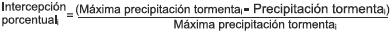 Para una tormenta "i" asociados a cada pluviógrafo, se presentaban cinco valores de montos de precipitación. En teoría, la máxima precipitación por tormenta se presentaría en el pluviógrafo sin cobertura vegetal, de modo que su intercepción porcentual sería nula. En cambio, en los restantes pluviógrafos la precipitación de la tormenta sería menor por la intercepción de cada cobertura vegetal.