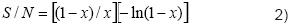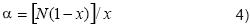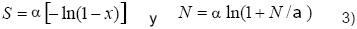Además, se deriva el índice α, combinando la ecuación anterior con las relaciones entre s y α y x, y entre N y α: