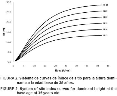 Estas ecuaciones quedan representadas en el sistema de curvas de índices de sitios en la Figura 2.