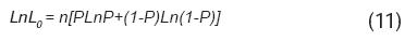 Donde LnL es la función de verosimilitud con la restricción de que todos los parámetros sean nulos y LnL0 la misma función para un modelo sin restringir y fue calculada mediante la expresión: