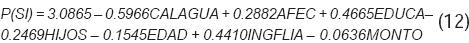 Donde P(SI) es una variable dependiente dicotómica que representa la probabilidad de responder SÍ=1 o NO=0, y las demás variables son independientes (Cuadro 1).