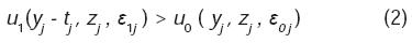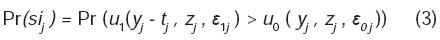 La probabilidad de una respuesta positiva es la probabilidad de que el encuestado piense que estará en un mejor escenario, incluso con el pago requerido, por tanto u1 > u0. Para el encuestado j, esta probabilidad es: