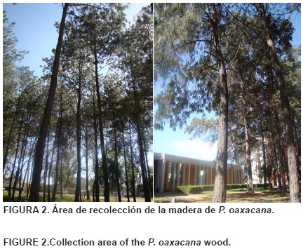 La plantación de P. oaxacana se realizó en junio de 1979, en ese entonces estaba clasificada como Pinus pseudostrobus var. oaxacana. La madera fue recolectada en la plantación localizada a un costado de la División de Ciencias Forestales de la Universidad Autónoma Chapingo, situada en el km 38.5 de la Carretera MéxicoTexcoco, Chapingo, Estado de México (Figura 1 y 2). Esta zona se encuentra ubicada entre las coordenadas 19° 34' y 19° 22' de latitud norte; 98° 38' y 98° 56' de longitud oeste, a una altitud de 2,240 m. Presenta un clima templado subhúmedo, veranos lluviosos e inviernos secos, poca variación térmica, temperatura media anual de 15.9 °C, con una precipitación total anual de 608.2 mm (Instituto Nacional de Estadística, Geografía e Informática [INEGI], 2000), con suelos molisol y etisol, principalmente (Pedro y Cruz, 1992).