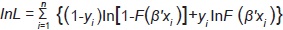 Donde; F es la función de distribución acumulada de η y Pr ob(y1= 0)=1 - F(β'x¡),