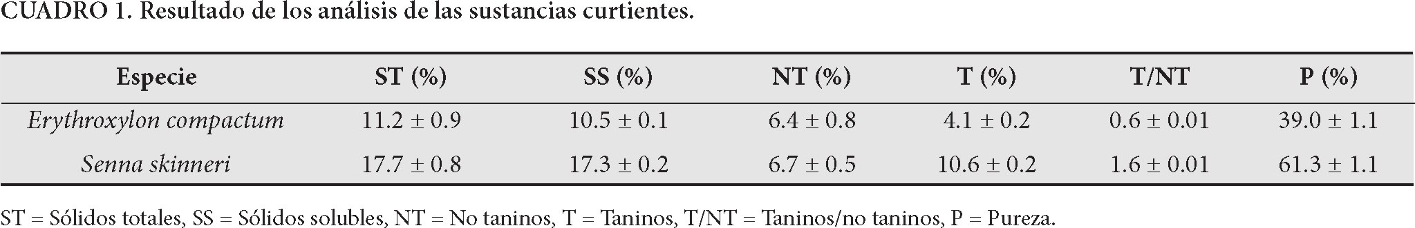 Evaluación de la calidad curtiente de los taninos de E. compactum y S. skinneri
