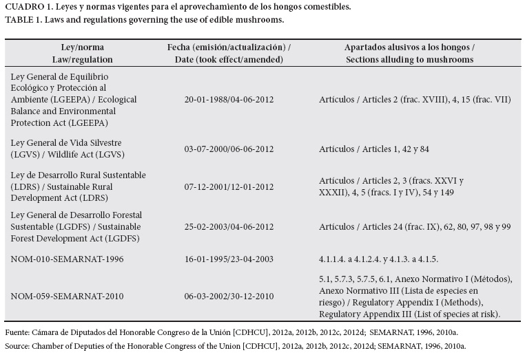 En el Cuadro 1 se presenta el marco legal que regula el aprovechamiento de los hongos silvestres comestibles.