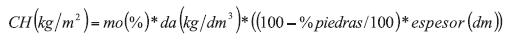 pHi = Factor pH del horizonte i de acuerdo con lo siguiente: < 4.0 = 0.1; 4.0 a 4.9 = 0.3; 5.0 a 5.5 = 0.5; 5.6 a 6.4 = 0.8; ≥ 6.5 = 1.