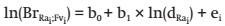 The fitting of a regression model in a potential linearized structure [5] was performed using the independent variable “D2H”, with incorporation of indicator variables (for each parent material) and subsequent use of the bias correction factor [2].