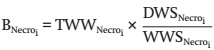 Necromass was estimated by collecting all the dead branches of each sampled tree, which were weighed in the field to the nearest 20 g. Subsequently, an approximately 1,000 g sample was obtained and then weighed in the field to the nearest 0.1 g. The necromass sample was taken to the laboratory and dried in an oven at 65 °C to constant weight, and its dry weight was recorded to the nearest 0.1 g. From the dry and wet weight of each necromass sample, the total necrosis of each sampled tree was determined [3].