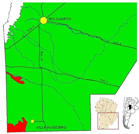 The study area is located in the south of the province of Córdoba, Argentina. The data were obtained in Río Cuarto and Villa Huidobro, with a remnant of 37 648 ha of calden forest (Figure 1).