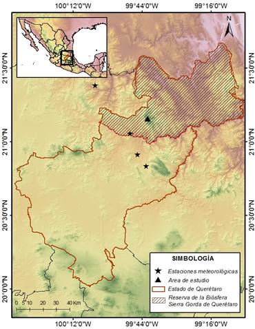 Cuadro 1 Estaciones meteorológicas más cercanas al sitio de muestreo en el suroeste de la Reserva de la Biosfera Sierra Gorda.